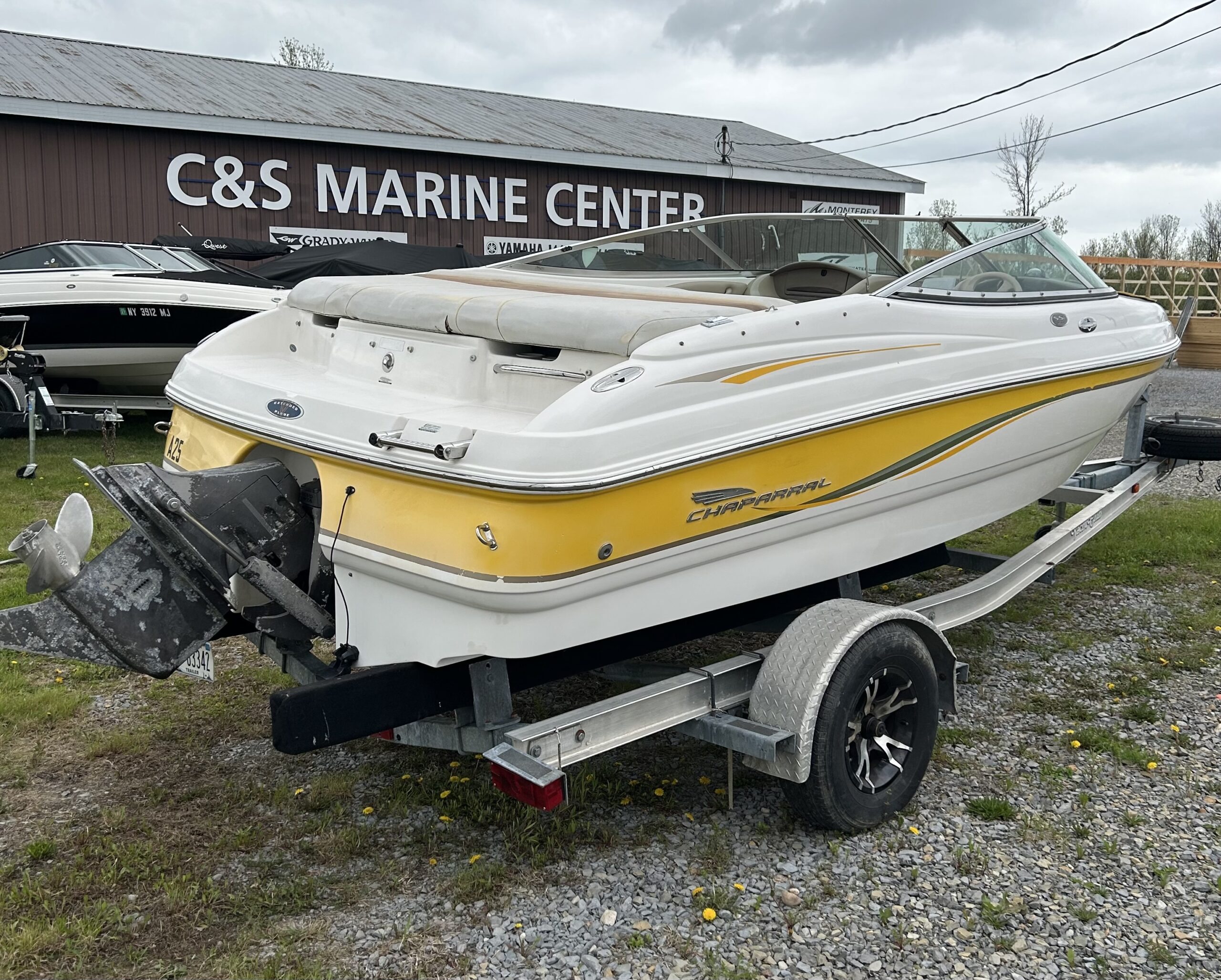 This Chaparral comes with a Yacht Club trailer, and bimini top.